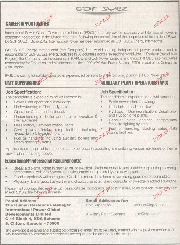 Unit Supervisors And Auxliary Plant Operators Wanted