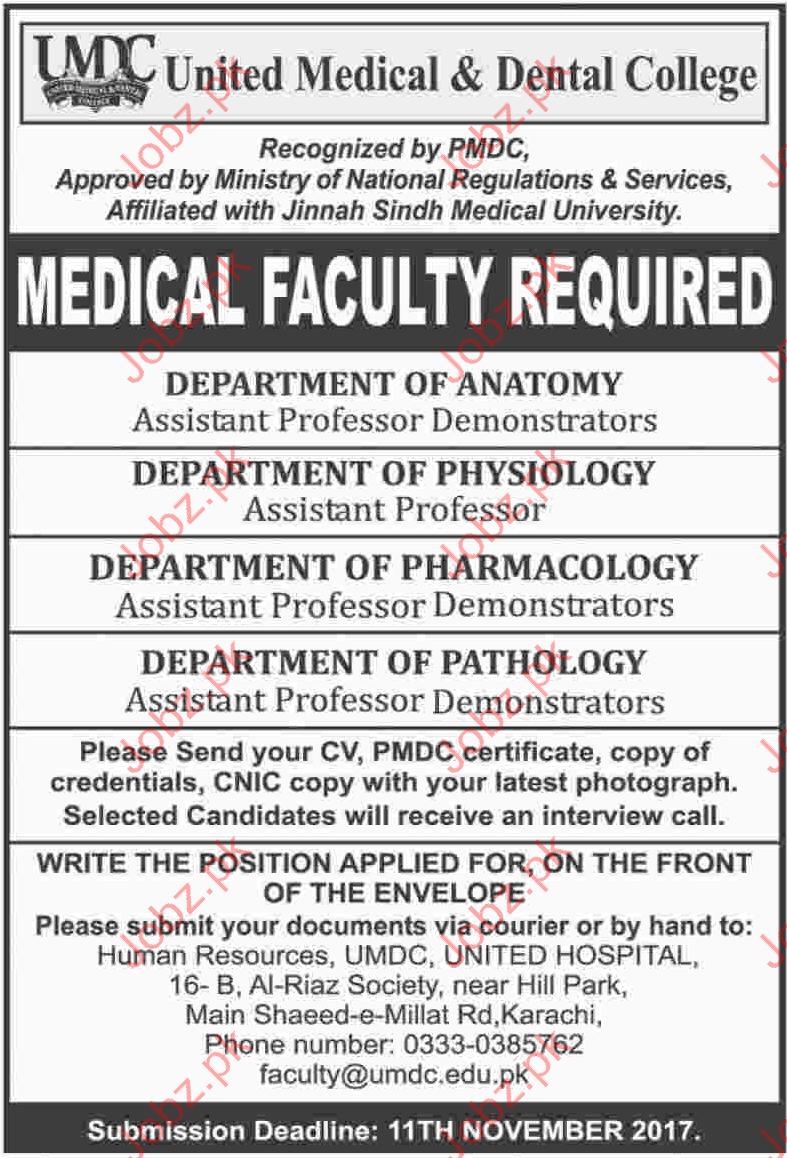 Latest United Medical & Dental College Teaching Posts Karachi 2025