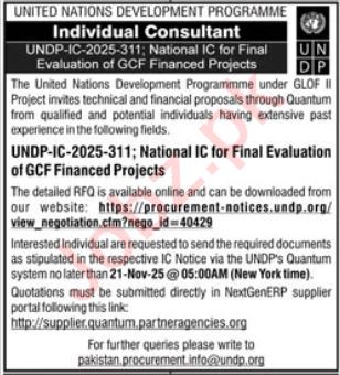 United Nations Development Programme UNDP jobs advertisement dated about 17 November 2025 in daily Jang Newspaper invites application for the vacant post of individual consultant in Quetta, quetta Balochistan Pakistan. Educational qualifications required MS, Bachelor and Master etc.