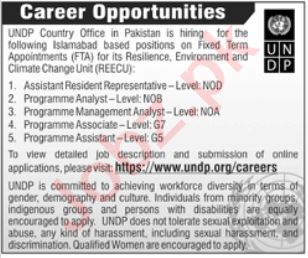 United Nations Development Programme UNDP invites applications for job positions advertised in daily Jang dated 21 August 2022 for following vacancies in Islamabad, islamabad Islamabad Pakistan.