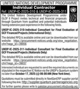 Vacant posts including consultant, individual consultant and individual contractor are announced in United Nations Development Programme UNDP Lahore, lahore Punjab Pakistan as per 12 October 2025 advertisement in daily Jang Newspaper. Persons with Bachelor etc. education can apply.