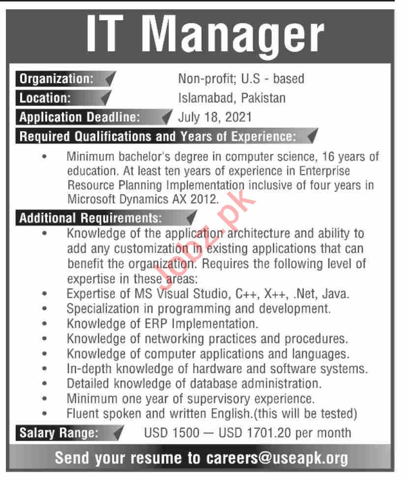 Vacancies in The United States Educational Foundation in Pakistan USEFP Advertisement July 2021