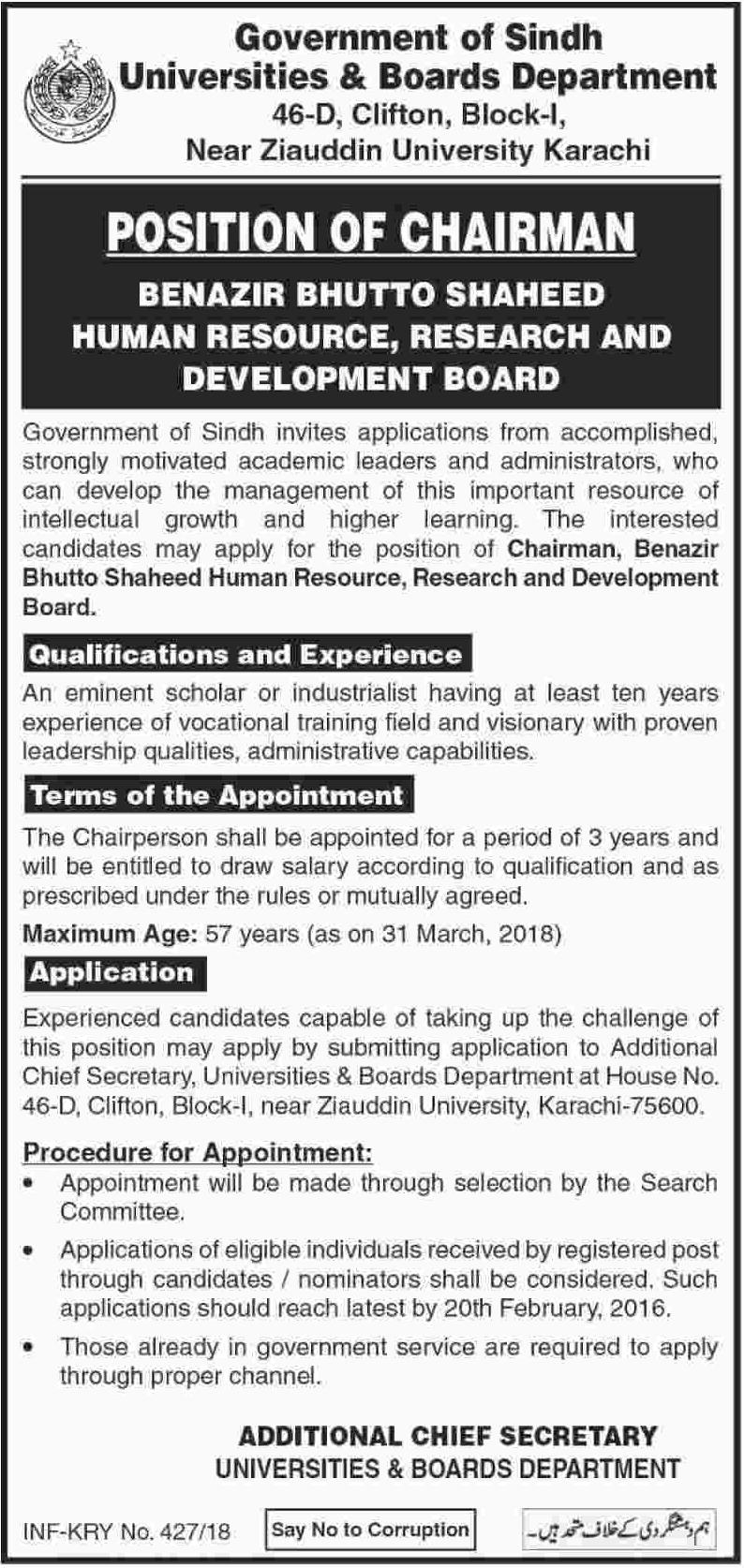 Universities & Boards Department Need Chairman