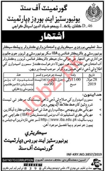 Vacancies in Universities & Boards Department Advertisement July 2019