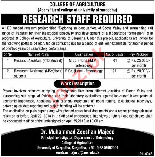 Latest University of Sargodha UOS Research Posts Sargodha 2025