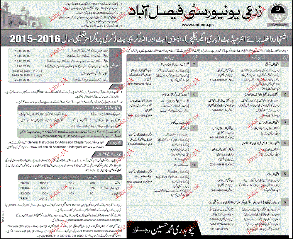 University of Agriculture Faisalabad Admission in BSc, MSc