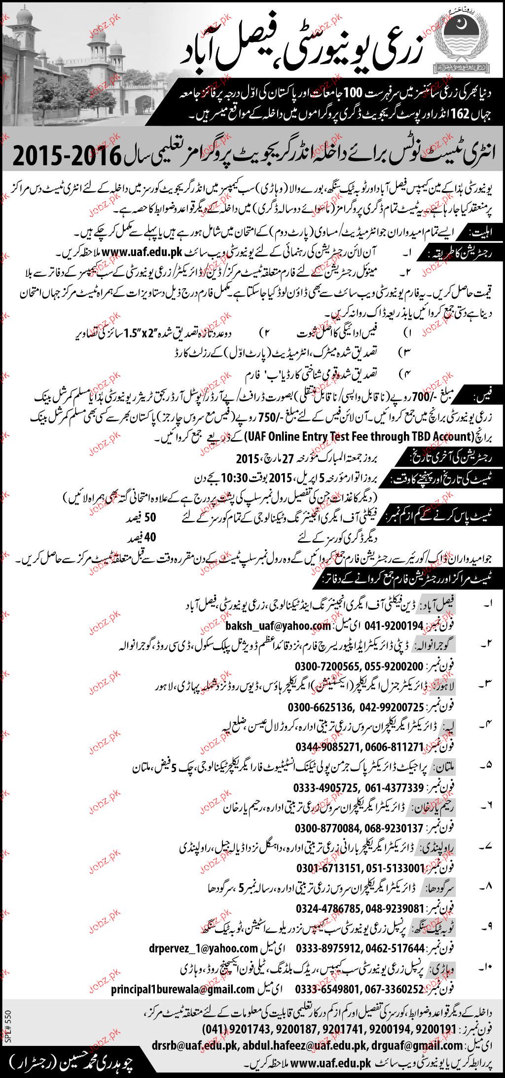 University of Agriculture Faisalabad Admission in Undergraduate Programs in Faisalabad. Read newspaper ad for exact details.