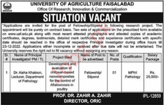 Vacancies in University of Agriculture UAF Advertisement December 2022