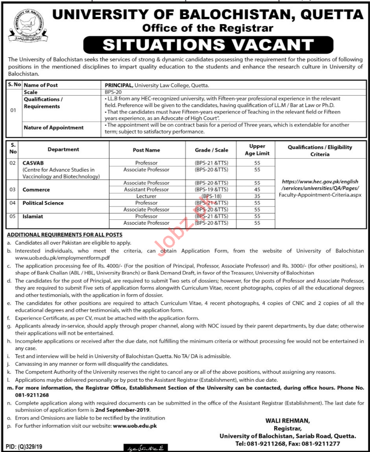 Vacancies in University of Balochistan Advertisement July 2019