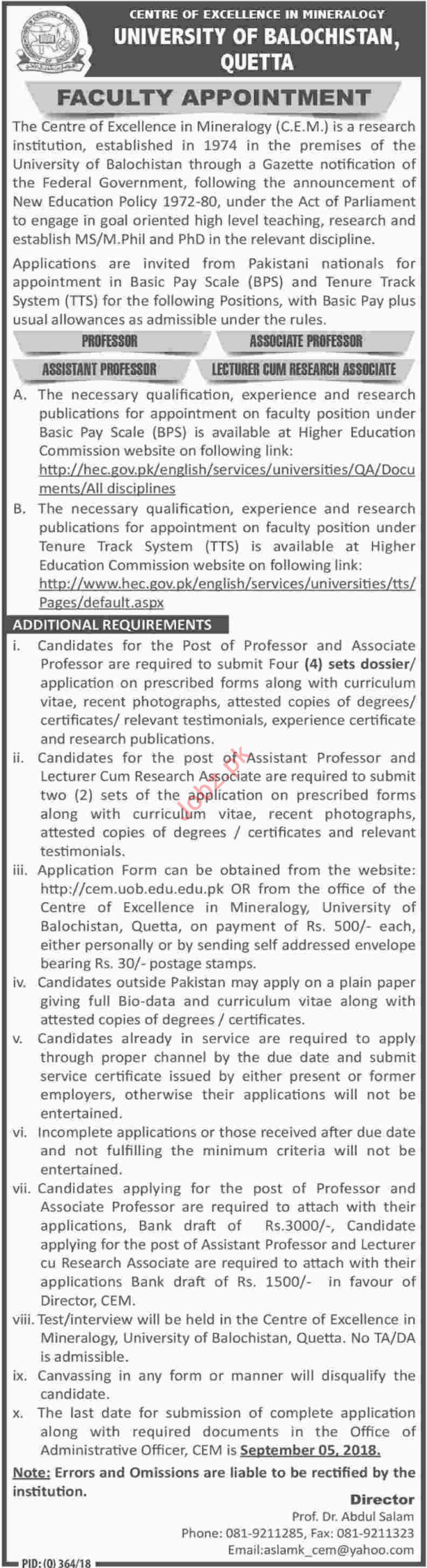 University of Balochistan Quetta Faculty Jobs 2018
