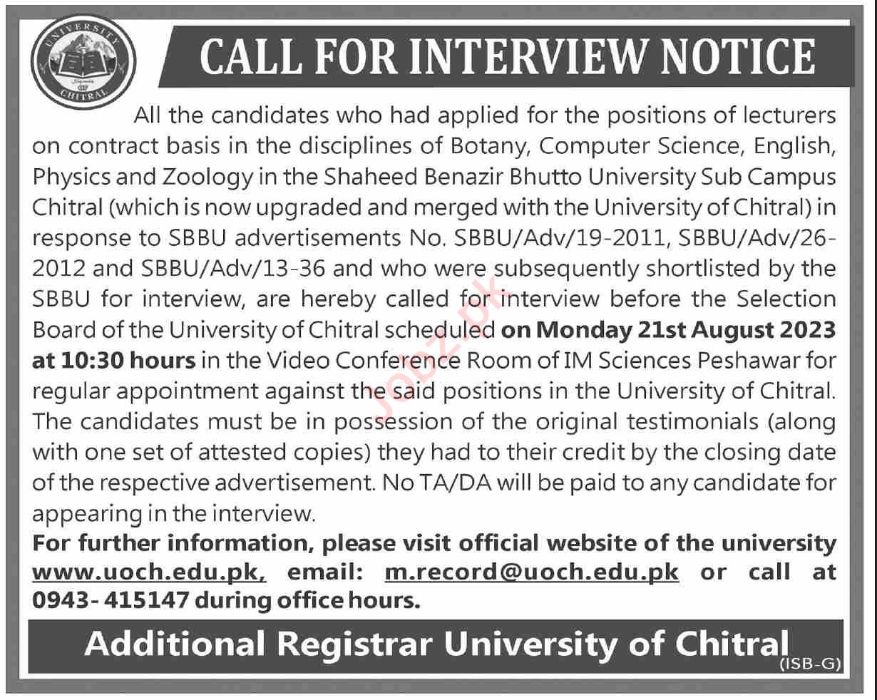 University of Chitral is looking for candidates for following posts as per job advertisement published in daily Dawn Newspaper of August 13, 2023 for location Chitral, chitral Khyber Pakhtunkhwa KPK Pakistan: