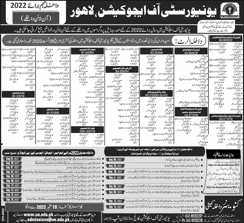 University of Education has announced admissions 2022 for Admission take Place in Bachelor of Science Information Technology, Zoology, Mathematics, Botany, Physics, Bachelor of Education.. Students can enroll for admissions in University of Education Lahore Punjab Pakistan for academic year 2022 to continue campus based or online education in Teaching Phd. Eligible students for fulfilling criteria for admissions in BBA, MS, Phd, Mphil, Master, MBA, Bachelor, B.ed and BS can enroll as per Private admission policy 2022 till closing date 26 August 2022. Read newspaper ad for exact details.