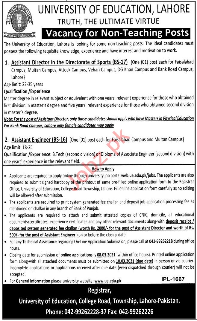 Apply as per details in job advertisement. Login to view further details of how to apply via https://www.jobz.pk online.
