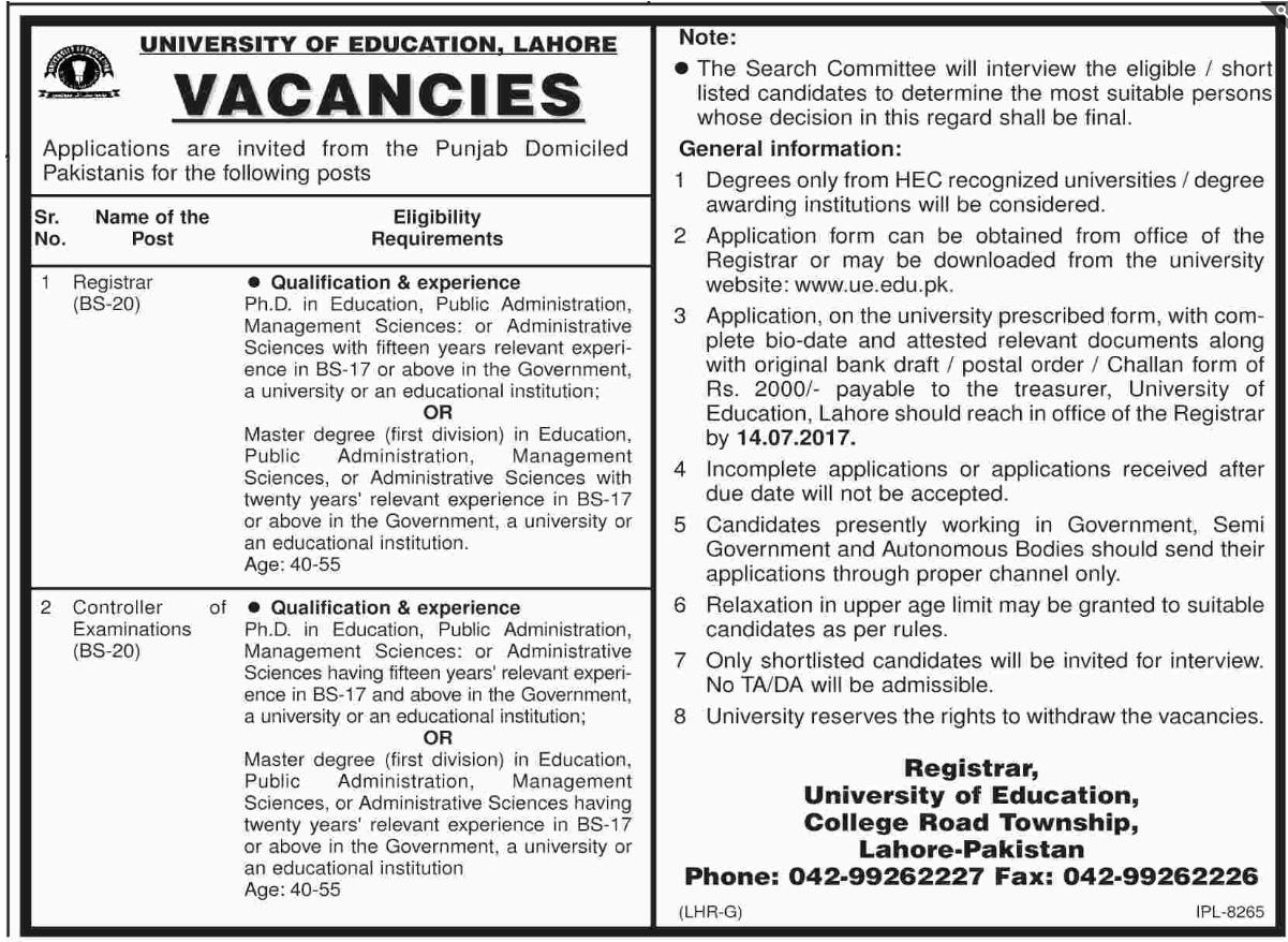 University Of Education, Lahore Jobs