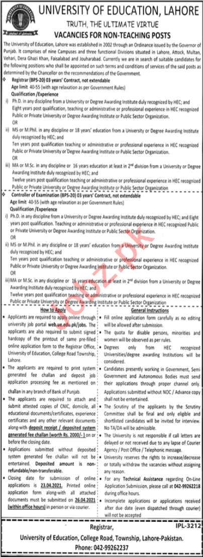 University of Education Lahore Non Teaching Staff Jobs 2021