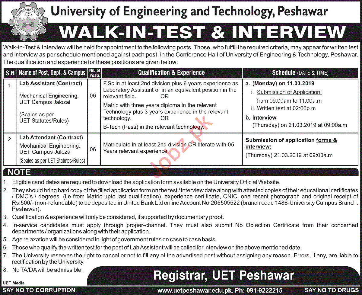 Latest University of Engineering and Technology UET Education Posts Peshawar 2025