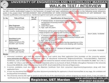 University Of Engineering & Technology UET Mardan Jobs 2020