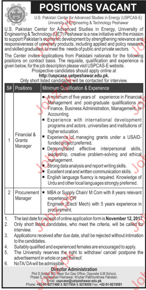 Latest University of Engineering and Technology UET Engineering Posts Peshawar 2025