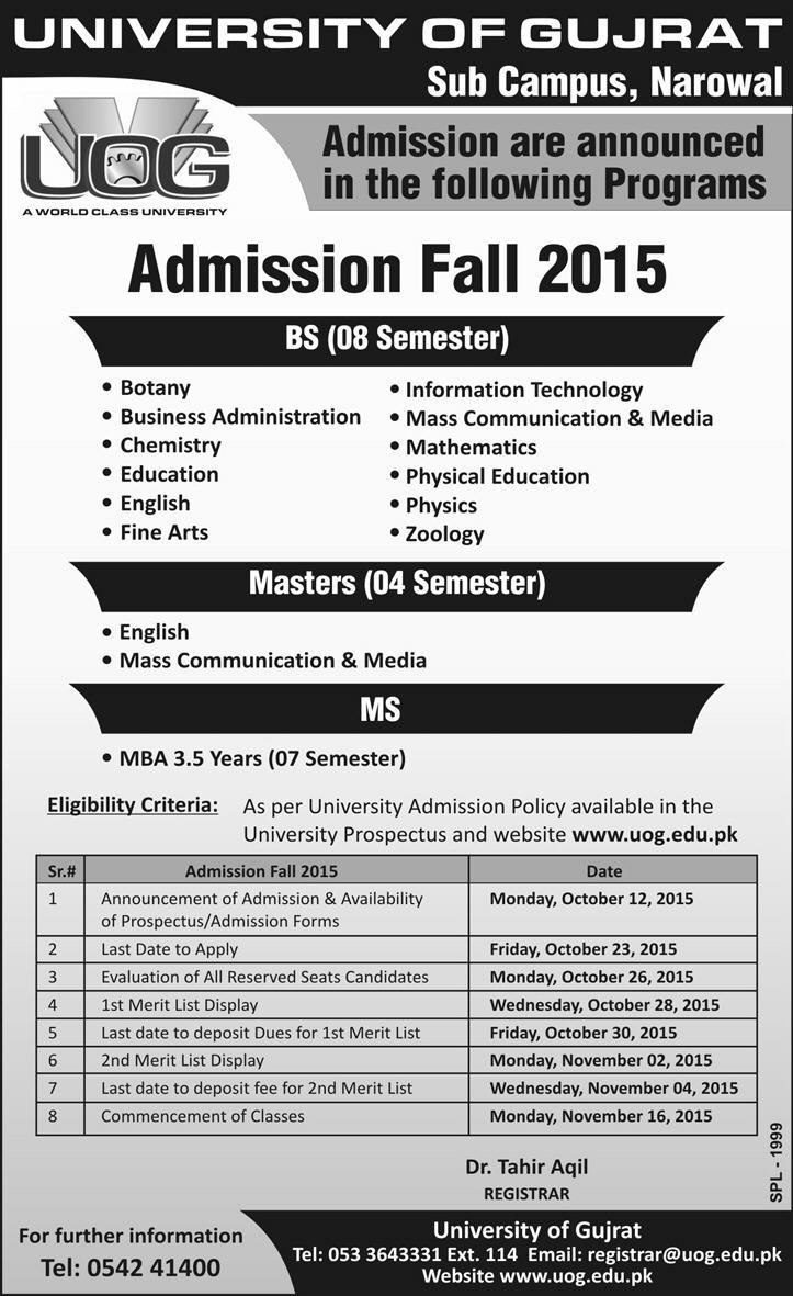 University of Gujrat Admission in BS in Gujrat. Read newspaper ad for exact details.