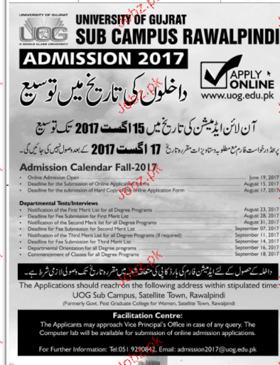 University of Gujrat Admission in Graduate Programs in Rawalpindi Campus. Read newspaper ad for exact details.