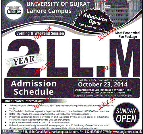 University of Gujrat Admission in LLM in Gujrat. Read newspaper ad for exact details.