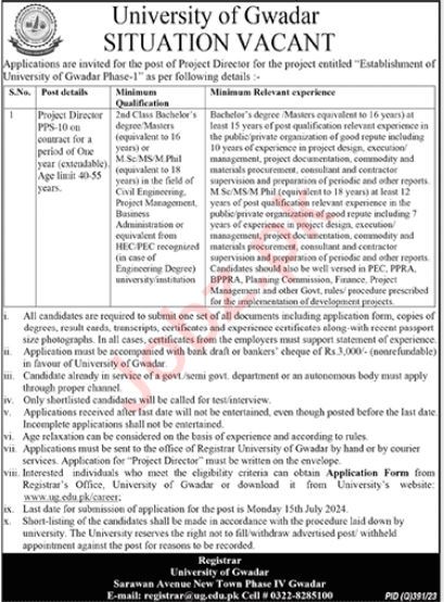 Apply at University Of Gwadar latest Government jobs in Management and departments before closing date which is around July 15, 2024 or as per closing date in newspaper ad. Read complete ad online to know how to apply on latest University Of Gwadar job opportunities.