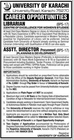 Apply as per details in job advertisement. Login to view further details of how to apply via https://www.jobz.pk online.