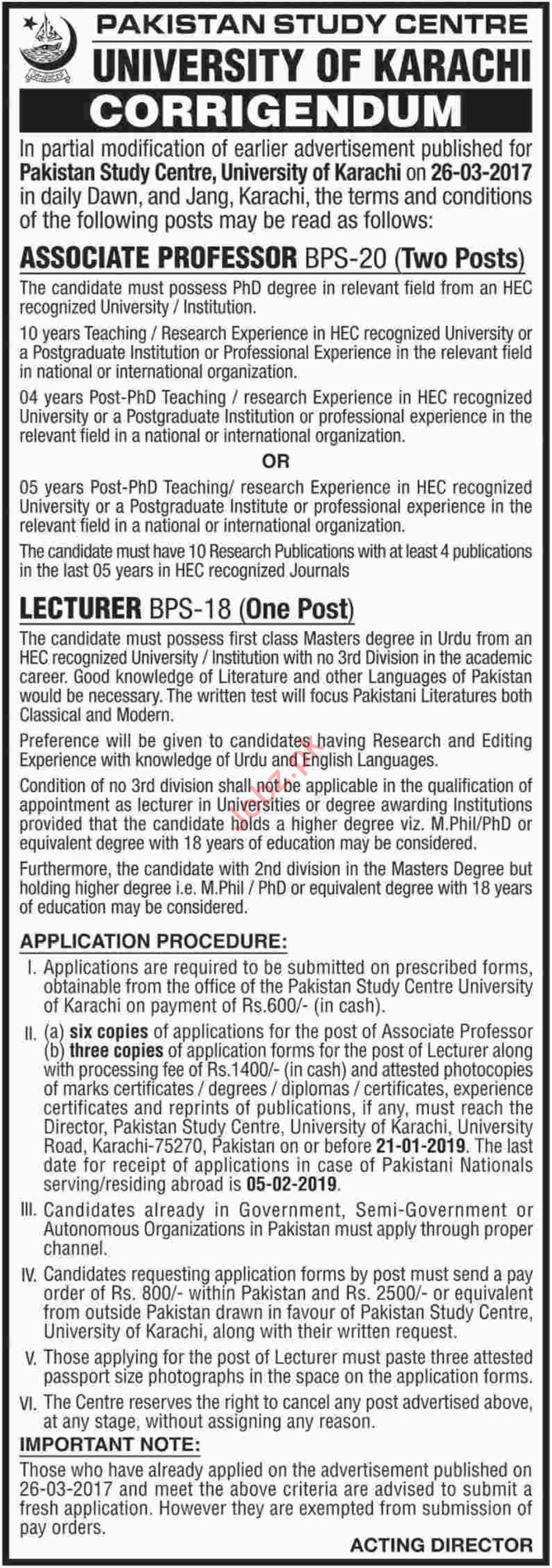 University Of Karachi Jobs 2019 For Professors