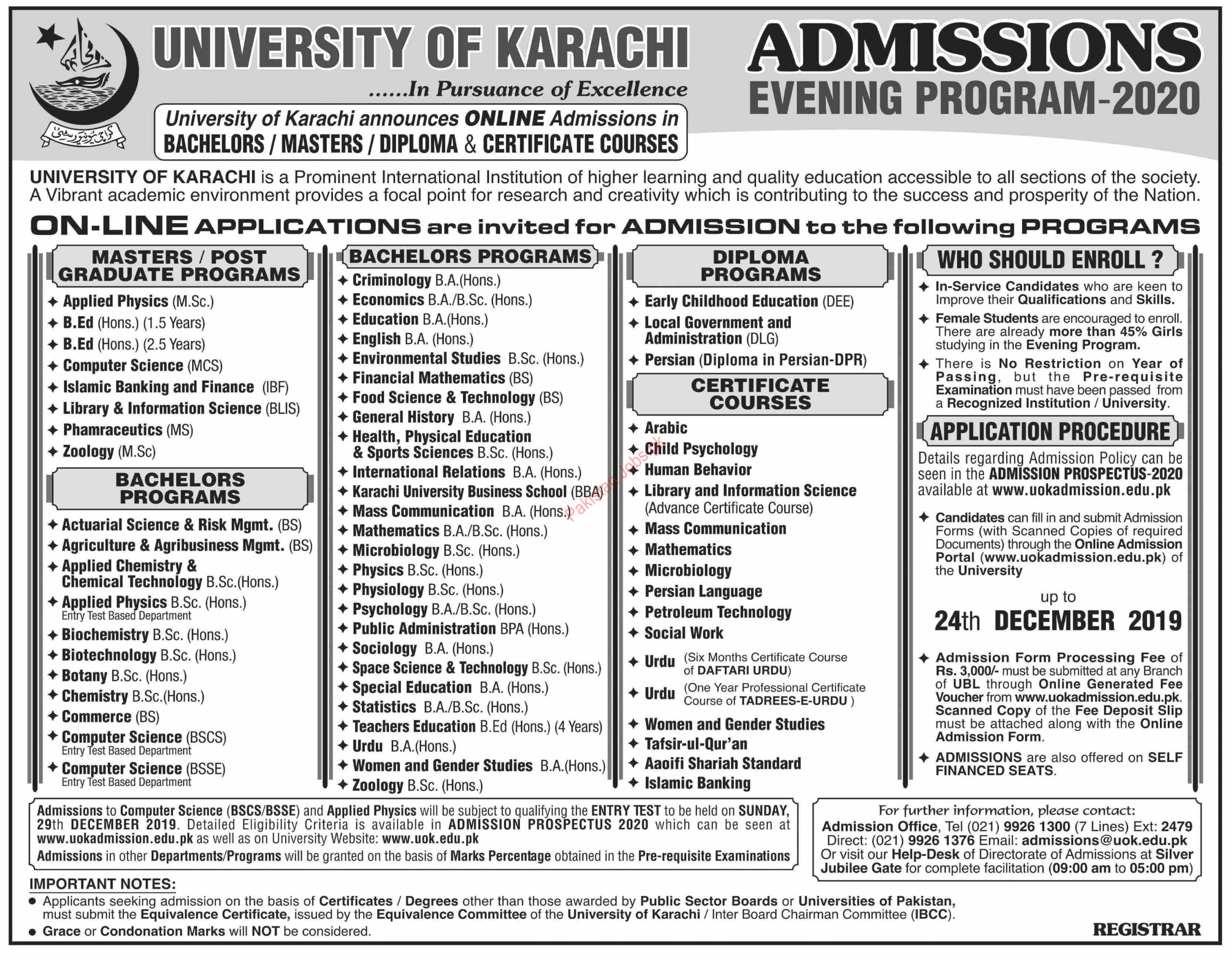 University of Karachi UoK Admissions 2020 has Opened