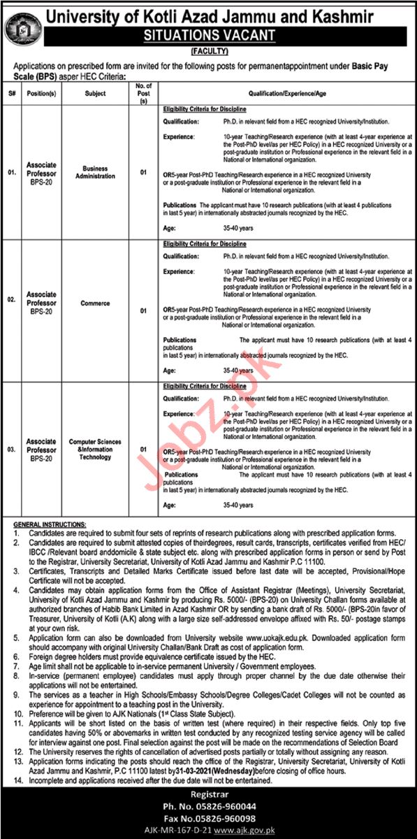 University Of Kotli Azad Jammu & Kashmir Jobs 2021