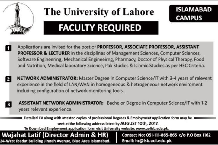 Apply as per details in job advertisement. Login to view further details of how to apply via https://www.jobz.pk online.