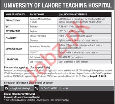 Latest University of Lahore Teaching Hospital Medical Posts Lahore 2025