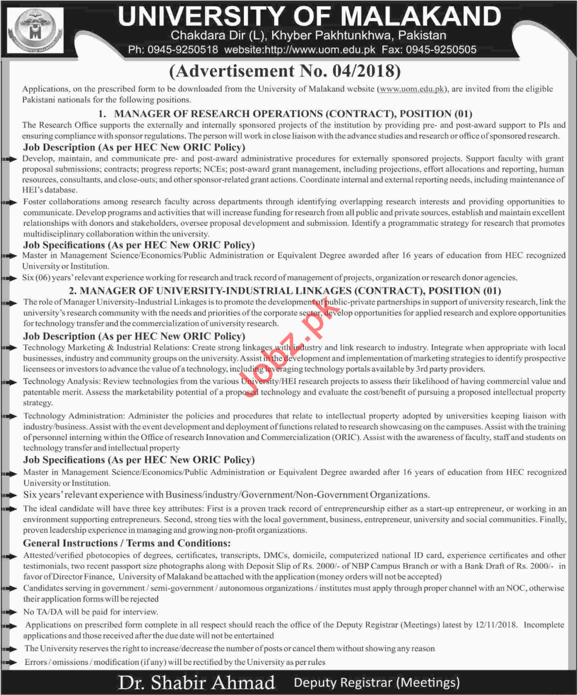 Apply as per details in job advertisement. Login to view further details of how to apply via https://www.jobz.pk online.