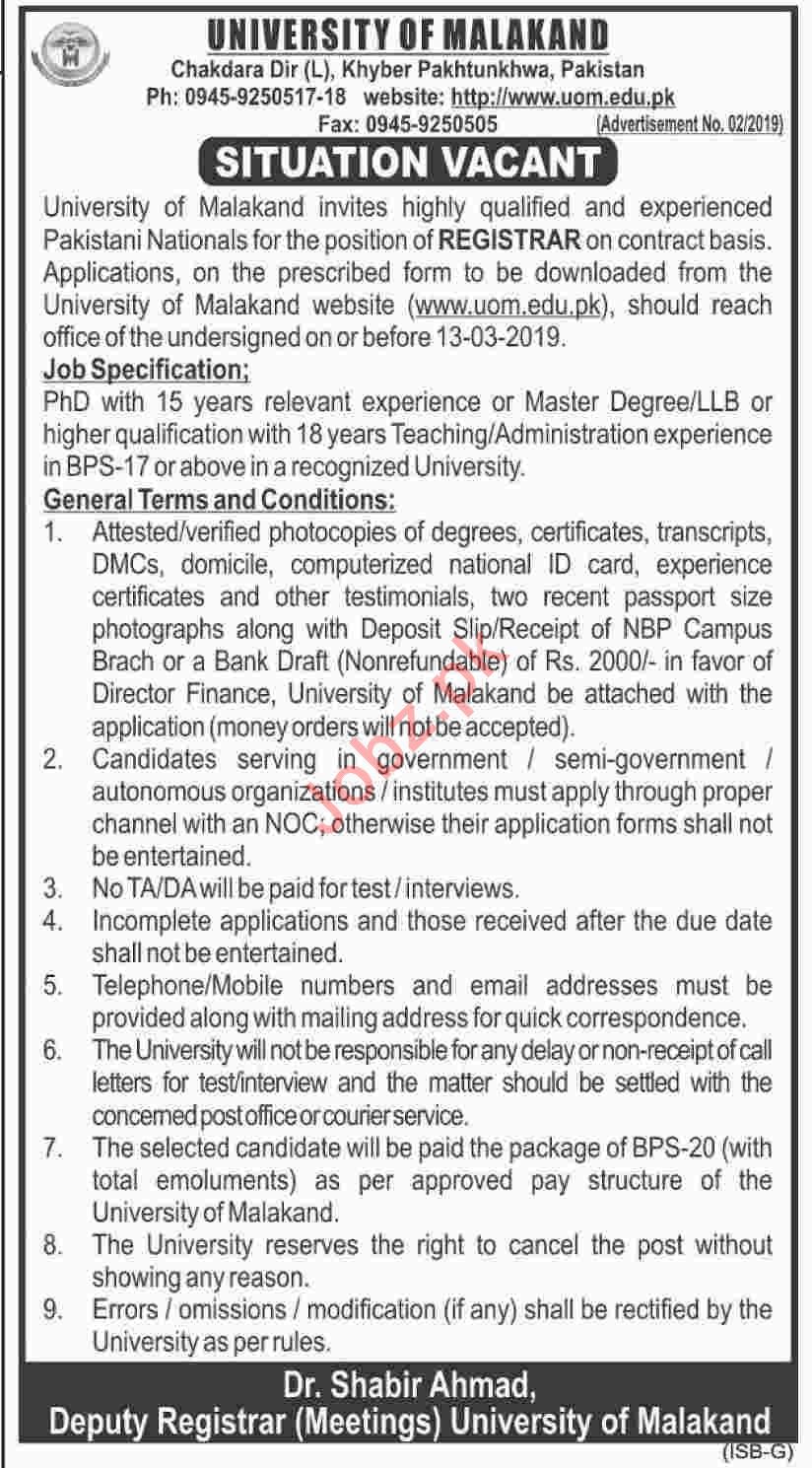 Apply as per details in job advertisement. Login to view further details of how to apply via https://www.jobz.pk online.