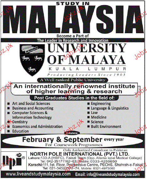 University of Malaysia Admission in PGD in Malaysia Read newspaper ad for exact details.