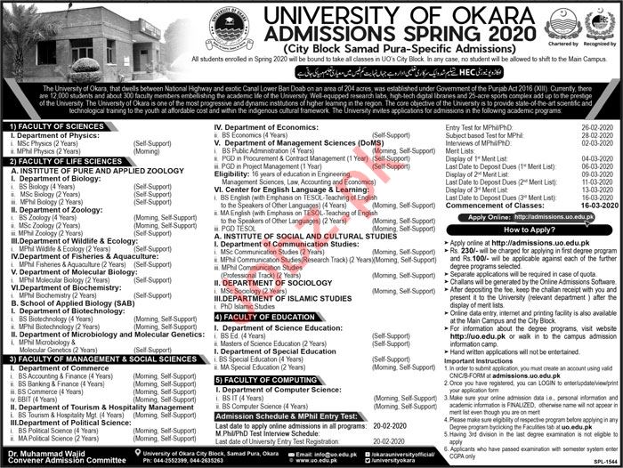 University Of Okara 2 KM Multan Road Renala Khurd By Pass, Okara-Pakistan Tel: 044-26