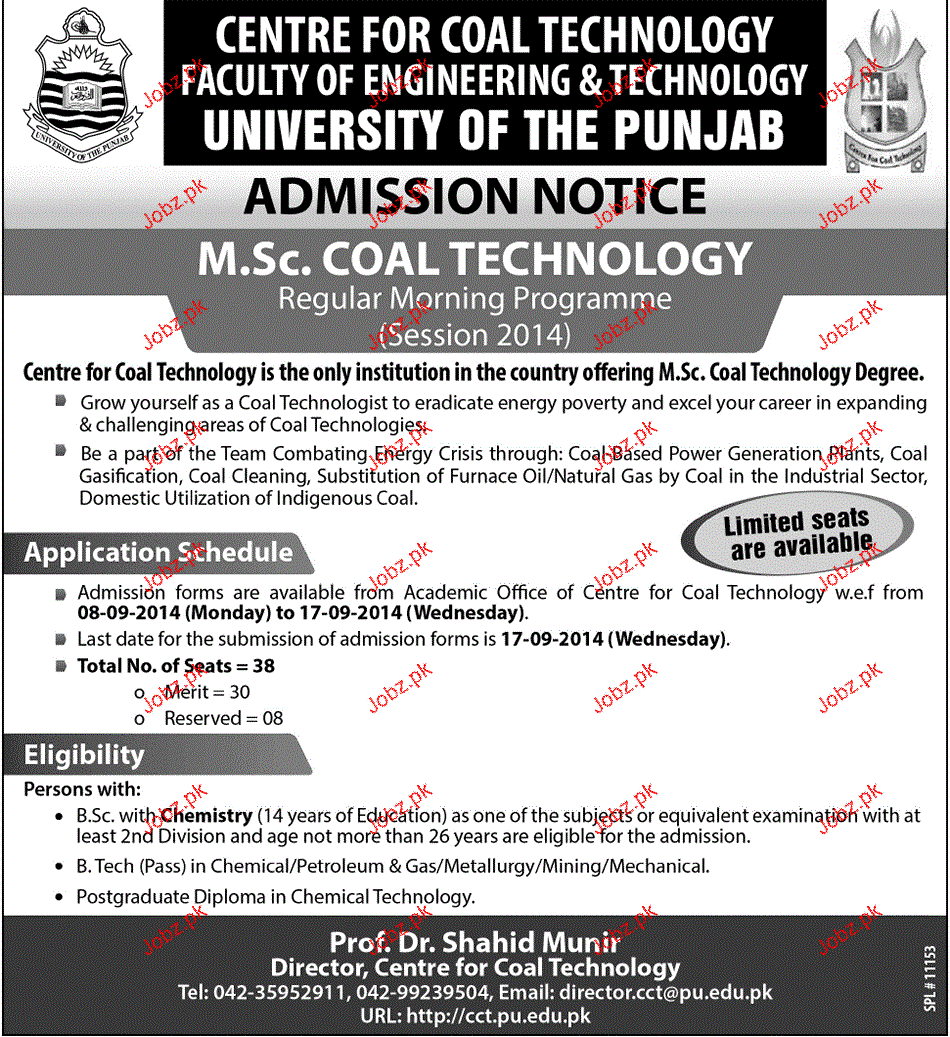 University of Punjab Admission in MSc in Lahore. Read newspaper ad for exact details.