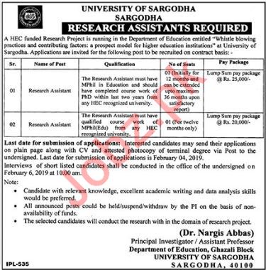 Latest University of Sargodha UOS Research Posts Sargodha 2025