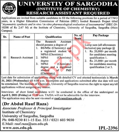 Latest University of Sargodha UOS Research Posts Sargodha 2025
