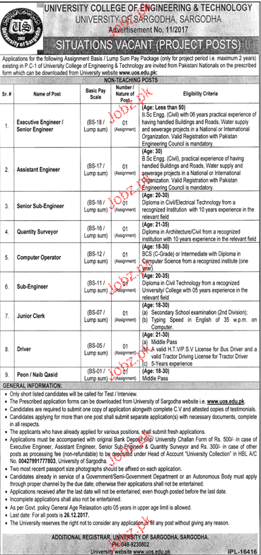 Latest University of Sargodha UOS Engineering Posts Sargodha 2025