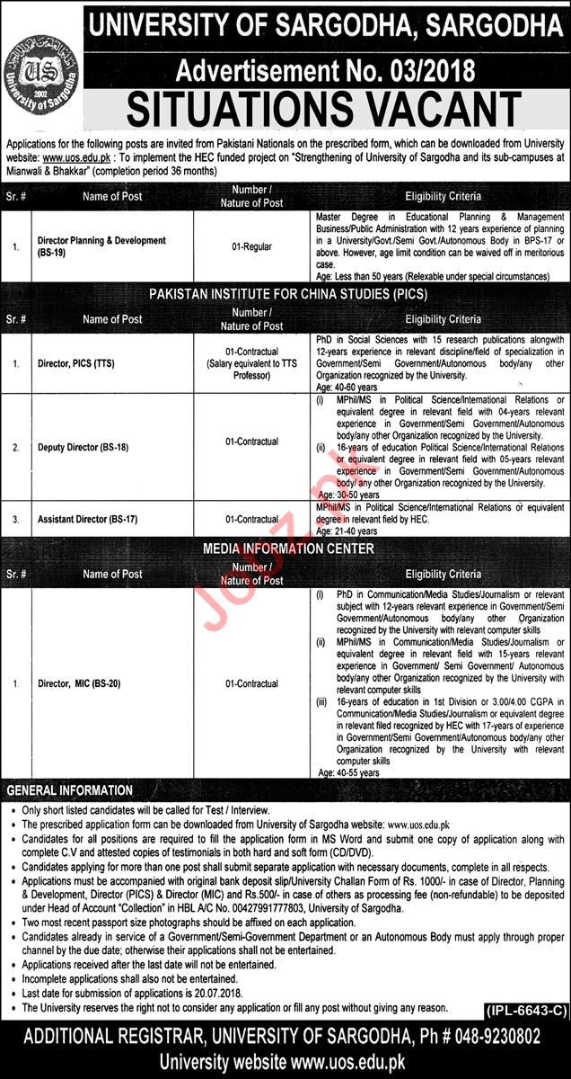 Latest University of Sargodha UOS Management Posts Sargodha 2025