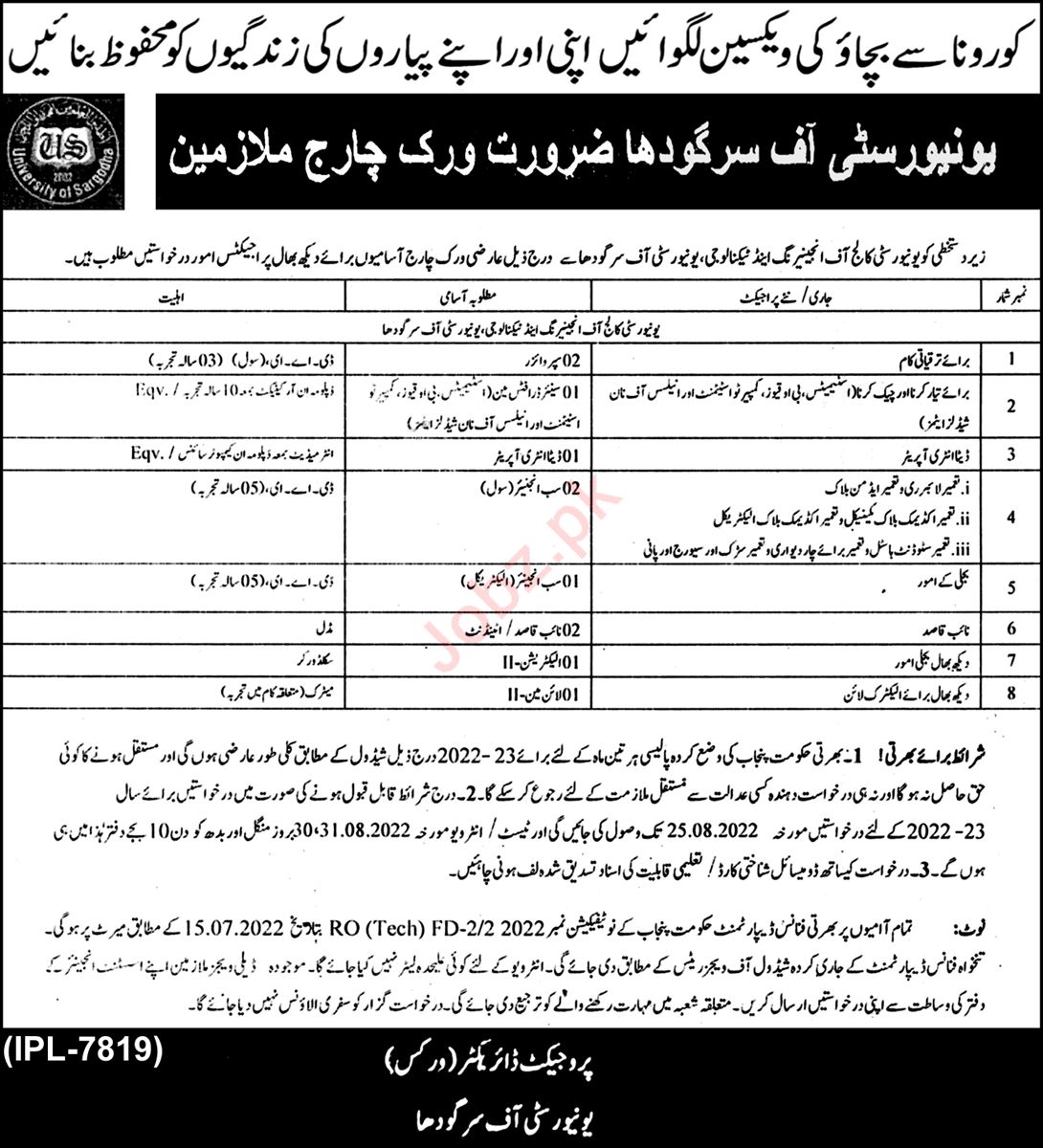 Vacancies in University of Sargodha UOS Advertisement August 2022