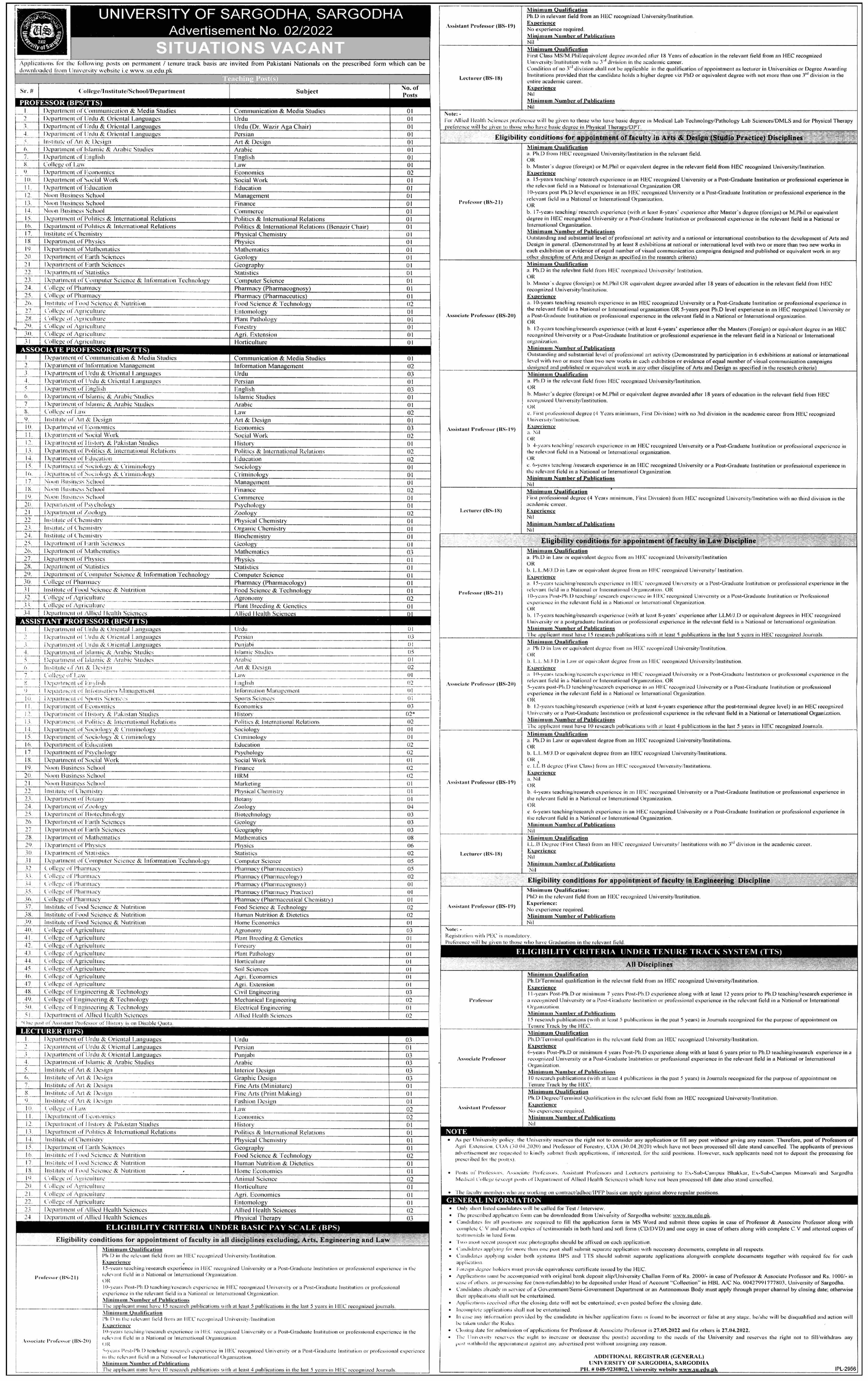 Vacancies in University of Sargodha UOS Advertisement March 2022