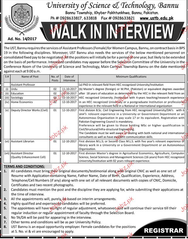 Apply as per details in job advertisement. Login to view further details of how to apply via https://www.jobz.pk online.