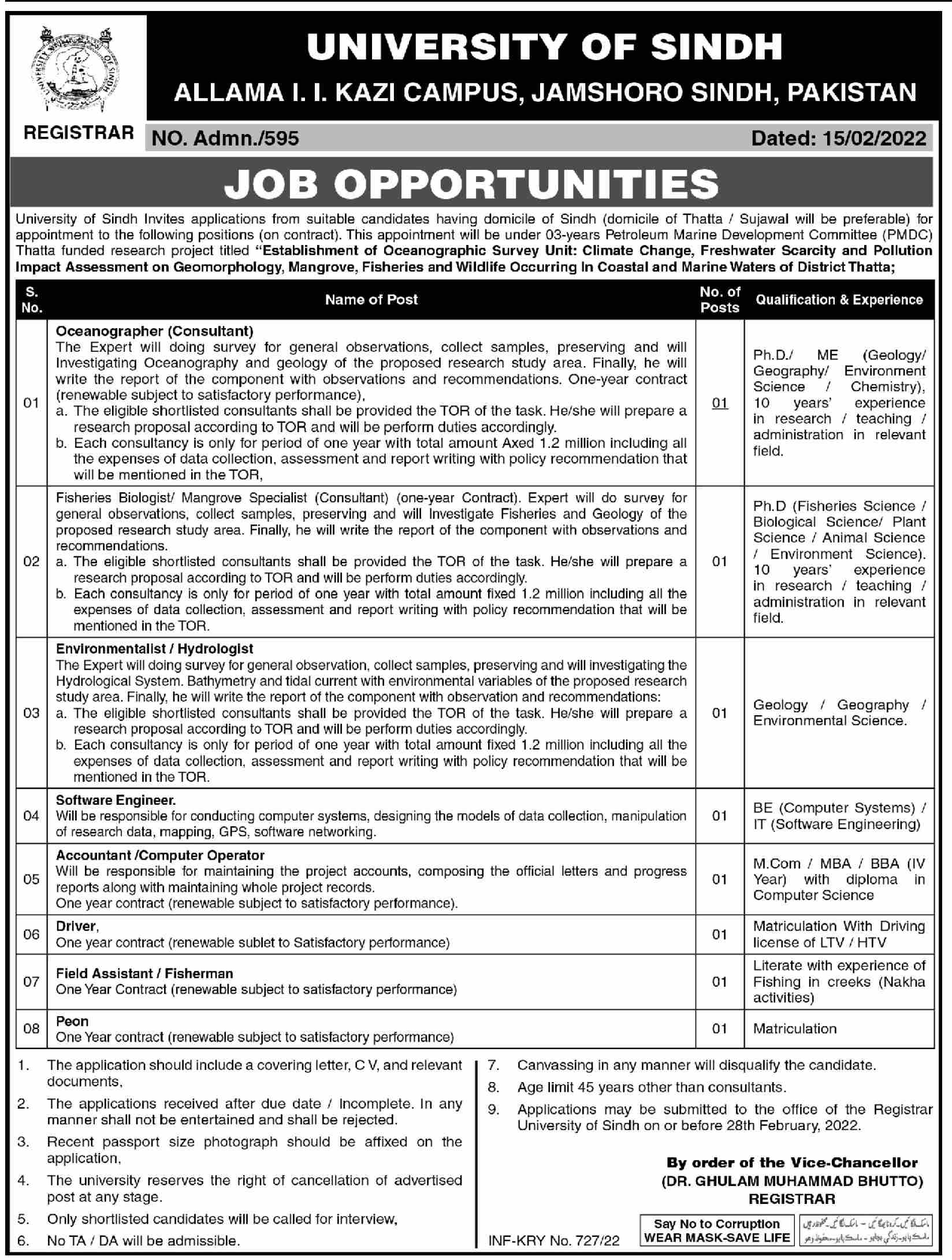 Vacancies in University of Sindh Advertisement February 2022