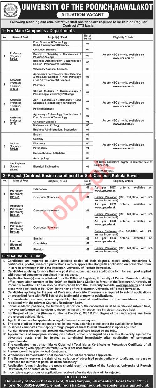 Latest University Of The Poonch Teaching Posts Rawalakot 2025