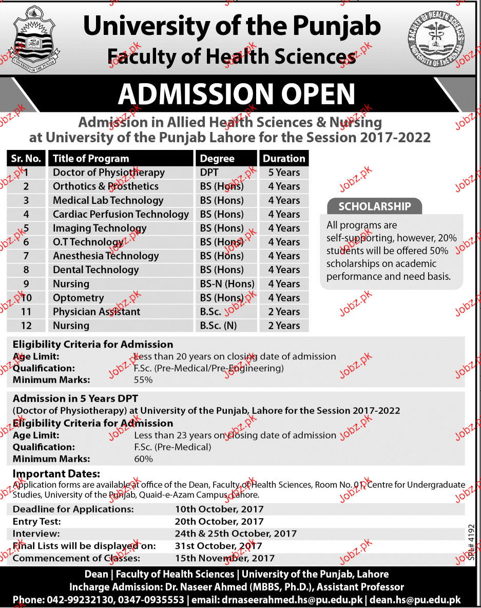 University of the Punjab Admission in BS in Lahore. Read newspaper ad for exact details.