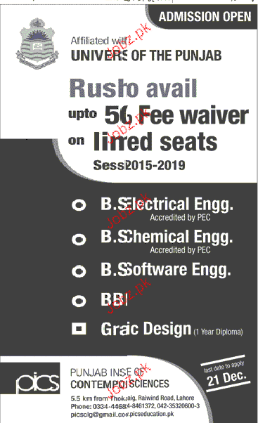 University of the Punjab Admission in BSc, BB and Courses in Lahore. Read newspaper ad for exact details.