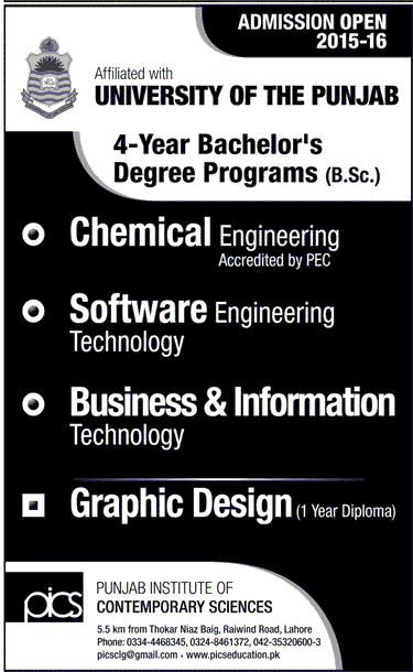 University of the Punjab Admission in BSc in Lahore. Read newspaper ad for exact details.