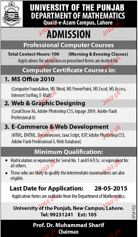 University of the Punjab Admission in Courses in Lahore. Read newspaper ad for exact details.